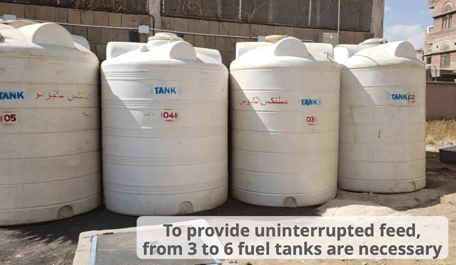 WFP offers medical care to the population in dozens of hospitals throughout Yemen. Sustainable energy supply of hospitals is provided by diesel generator sets.