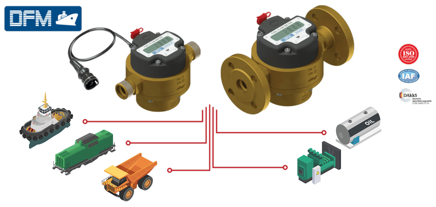 DFM Marine is a precise tool for fuel consumption measurement of maritime transport, locomotives, high-power diesel generators, mining and quarrying machinery, boilers/burners. DFM Marine fuel flow meters can be used within Telematics systems as well as stand-alone autonomous solution. DFM Marine is installed in fuel system of engines/boiler/burner, measures instant fuel consumption per hour and sends outputs signal to vehicle tracking device.