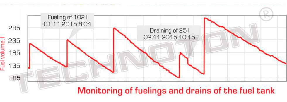 Such sensor provides 24/7 control of fuel tank, detecting all refueling and unauthorized fuel draining (aka fuel theft), extensive data on fuel use of individual vehicle and if used on the whole fleet, possibility of in-depth analysis of fuel-related operations to optimize fuel consumption.